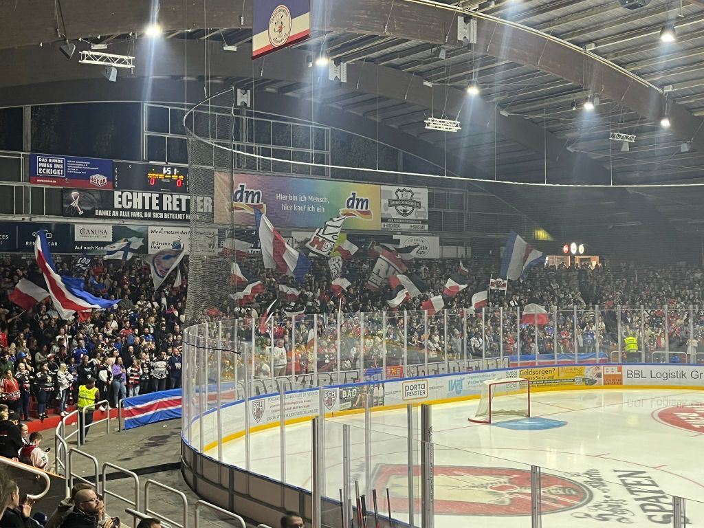 Auf einem sonnigen Sonntagnachmittag machten sich mehrere Autobesatzungen aus der blau-weiß-roten Landeshauptstadt auf den Weg in die kälteste Eishalle im Pott. Ausgestattet mit Trommel, Doppelhalter und Fahnen konnten wir gut 30 Indianer im Gästeblock zählen. Die Stimmung war super und das Spiel lies hoffen, so stand es doch recht zügig 1:0 für unsere Jungs. Im zweiten Drittel konnten weitere Treffer erzielt werden und es ging mit einer 3:1 Führung in die Pause. In den ersten zwei Dritteln sah man schon deutlich die Handschrift des neuen Trainers, auch wenn es noch an manchen Stellen hakt.